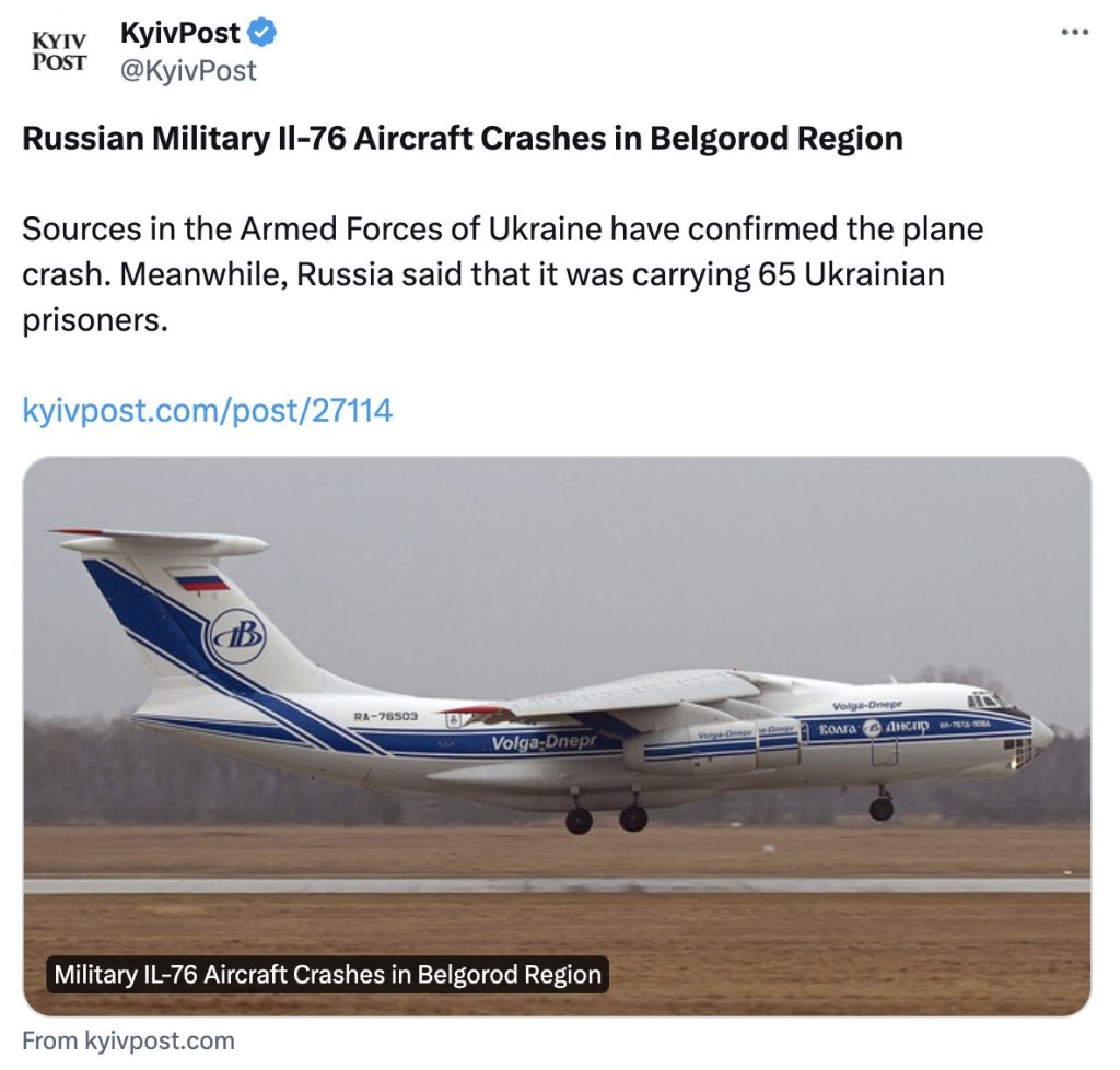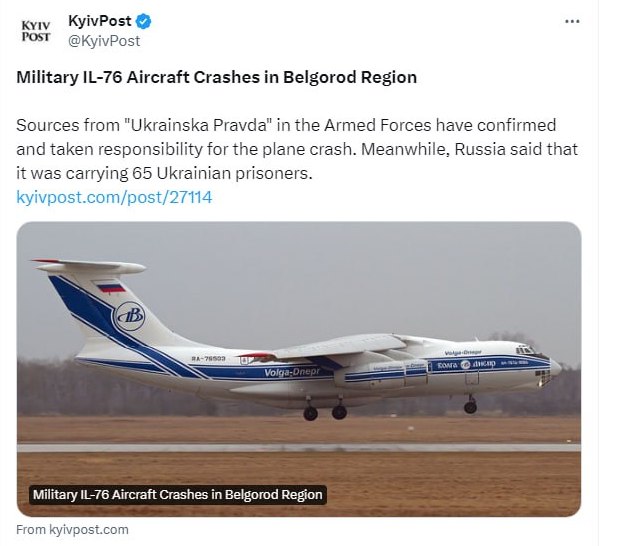 (4) Alex Christoforou on X: “Before and after screen grabs. New narratvie, via KyivPost: Ukrainska Pravda’s sources in the Armed Forces have confirmed the plane crash. Additionally, insiders from the General Staff told UP that the plane was carrying missiles intended for the S-300 air defence system.… https://t.co/240kx7d2id” / X (twitter.com)
