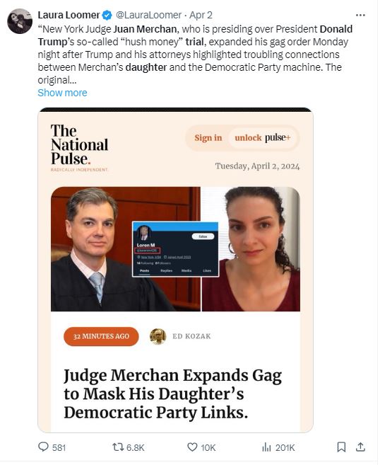 (1) Trump barred from attacks on judge’s daughter in New York “hush money” case gag order