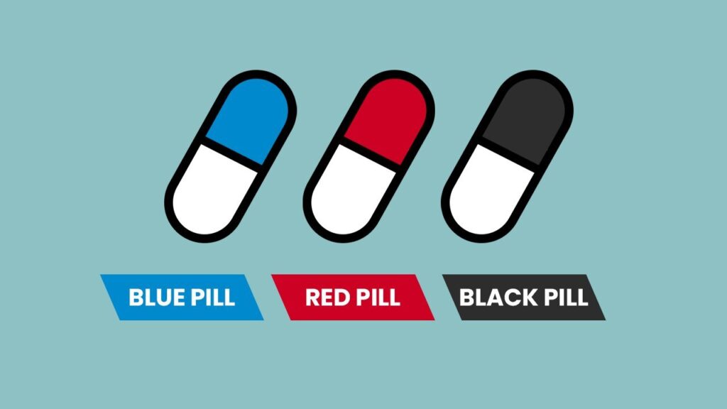 The red pill however, does come with a caveat; you will never trust anyone or anything. A rather dark side effect that can lead to, ‘The Black Pill’. Just when we thought we were done swallowing, there’s a new pill in town! Oh dear! What to do! Can we deal with more rejection? More despair? More doom and gloom? Now that we had healed from the heartache of discovering the Knight with the glitzy armour was gay, we have to consider that the 78 year old supergrandpa we thought we could trust, might not be ‘Kosher’ after all?! Or in fact too ‘Kosher’?!