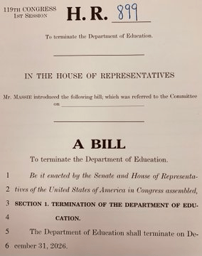 (6) “Rep Thomas Massie reintroduced H.R. 899, a one sentence bill to TERMINATE the federal department of education You know what else Thomas Massie introduced? H.R. 8421 – Federal Reserve Board Abolition Act (End The Fed) Let’s pass them BOTH, who agrees? Thomas Massie says “Americans would be better off if the Federal Reserve did not exist. The Fed devalues our currency by monetizing the debt, causing inflation.” (https://x.com/WallStreetApes/status/1885473685626126827)